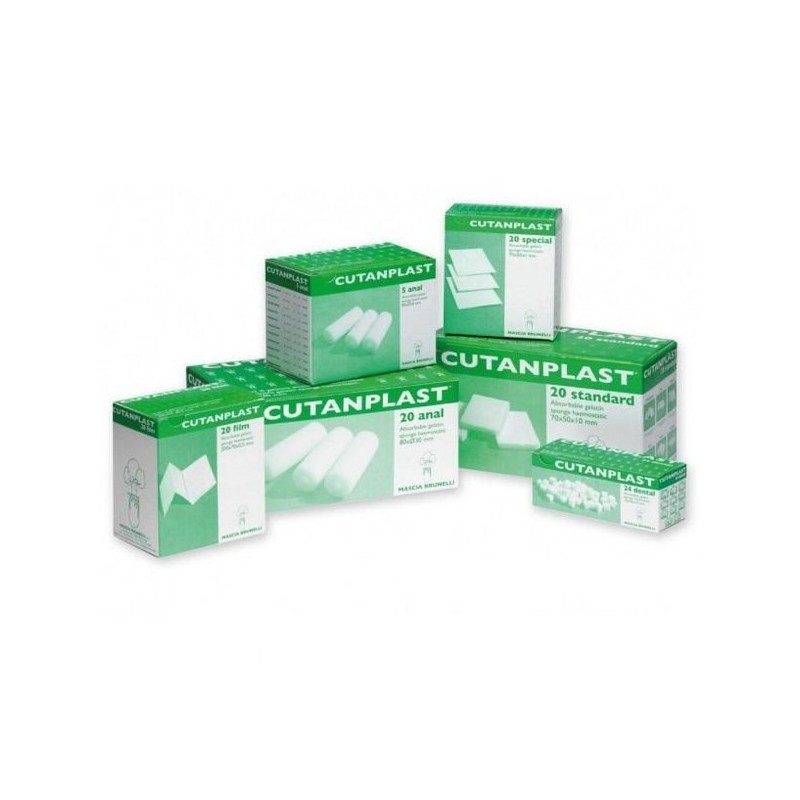 Cutanplast non è tossico, non provoca reazioni allergiche, assorbe una quantità di sangue corrispondente a circa 50 volte il suo peso, può essere imbevuto con una soluzione fisiologica sterile o con antibiotici garantendo localmente un'asepsi prolungata, riduce il tempo dell'intervento chirurgico.