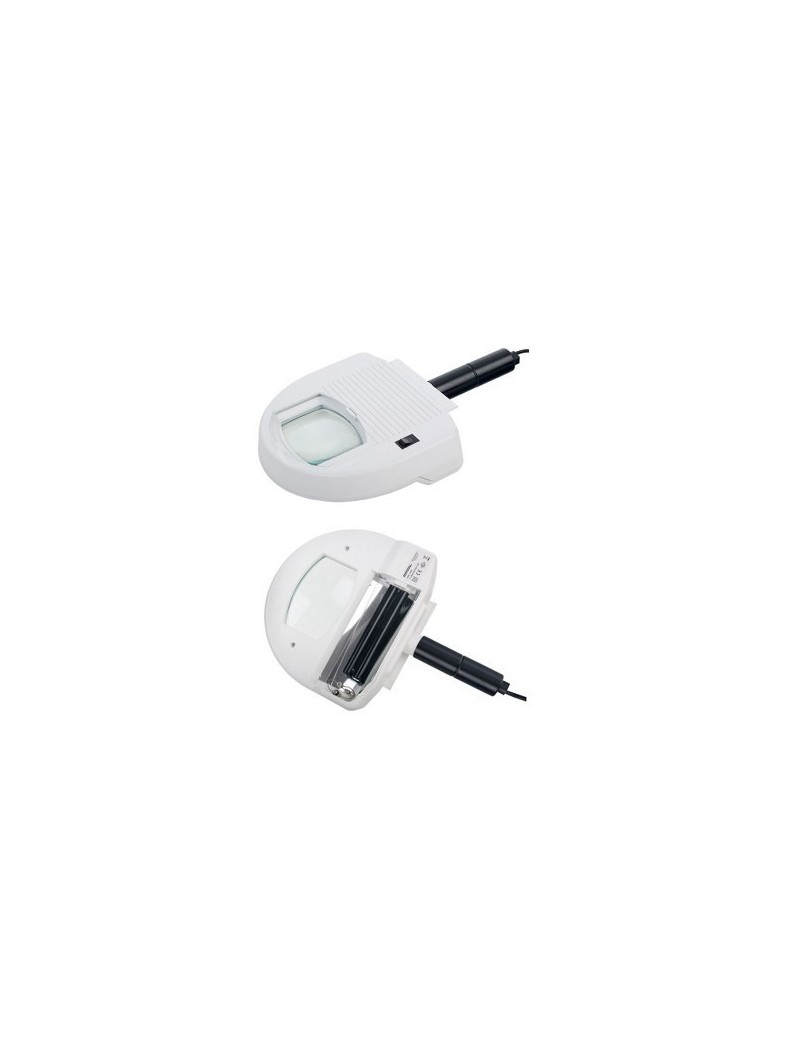 Lampada specifica per dermatologia, oftalmologia e veterinaria, dotata di una lampadina 9W con raggi UV di una lunghezza d'onda di circa 360 Nm, innocui per la pelle e gli occhi.