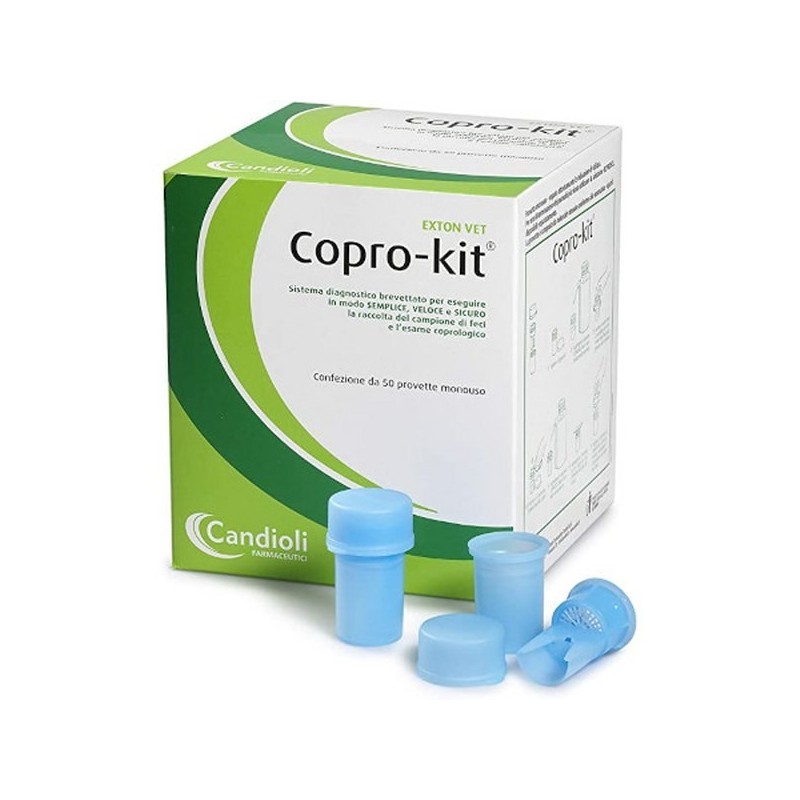 Copro-kit rappresenta il modo più facile ed igienico per la raccolta del campione e per l'esame coprologico. Sistema diagnostico fecale che consente, utilizzando lo stesso contenitore, il prelievo ed il trattamento del materiale fecale per la diagnosi parassitologica, senza necessità di centrifugazione. Viene eliminato ogni contatto o necessità di trasferimento di materiale fecale da parte dell'operatore.