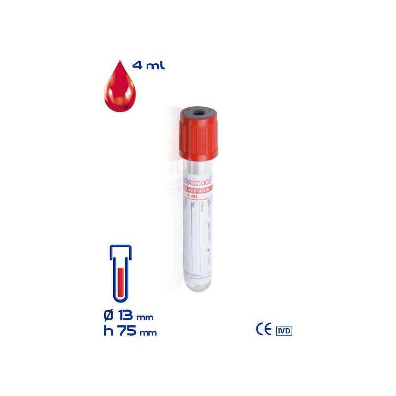 Provette con Attivatore di Coagulazione idonee per analisi di Chimica Clinica, Immunoematologia e Sierologia microbiologica.