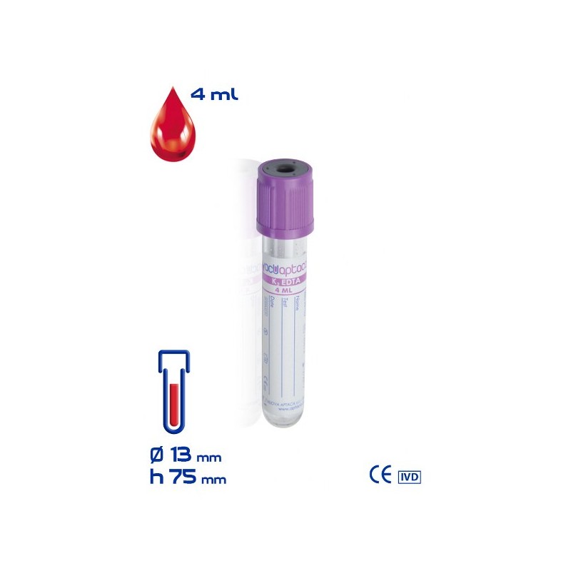 Varianti Varie Importate VACUAPT 13x75 mm con K2 EDTA x 4 ml di sangue, sterile - Conf. da 100 pz. LAB1925 |