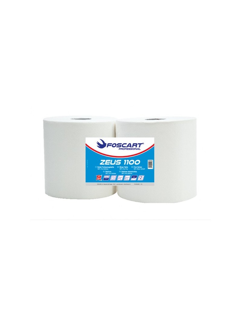 ZEUS Carta in Pura Cellulosa, 2 Veli, lavorazione incollata con goffratura ricamo. 800 strappi per rotolo. Dimensione strappo H 24 x 22