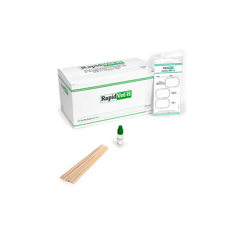 Il kit RapidVet-H Canine DEA 1 è un test di agglutinazione per determinare se il cane è DEA 1 positivo o DEA 1 negativo con anticorpi monoclonali IgM.