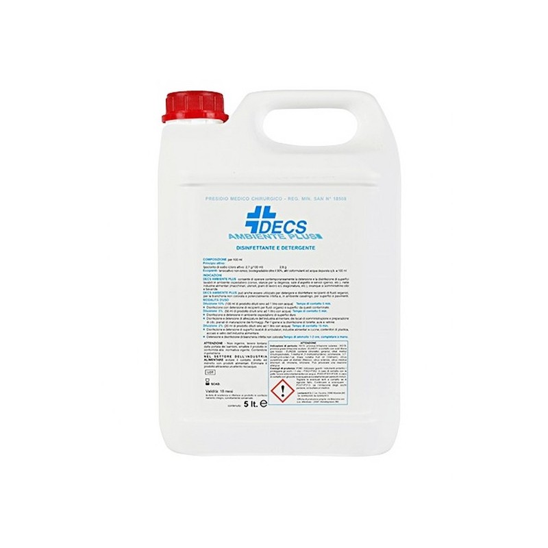 DECS AMBIENTE PLUS Soluzione disinfettante e detergente a base di ipoclorito di sodio, leggermente profumata.