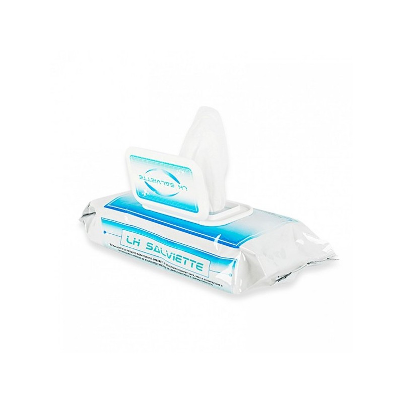 LH SALVIETTE LH Salviette imbibite di una soluzione disinfettante a base di didecil-dimetilammonio cloruro e o-fenil fenolo, in tessuto non tessuto, pronte all’uso. Da utilizzare per la disinfezione delle attrezzature ospedaliere e della sala operatoria (manipoli, carrelli, bacinelle, letti, mobili, carrozzelle, poltrone, ripiani, etc.); disinfezioni dello studio odontoiatrico e poliambulatori medici; decontaminazione dei dispositivi medici prima della pulizia e sterilizzazione; disinfezione di dispositivi medicali puliti.