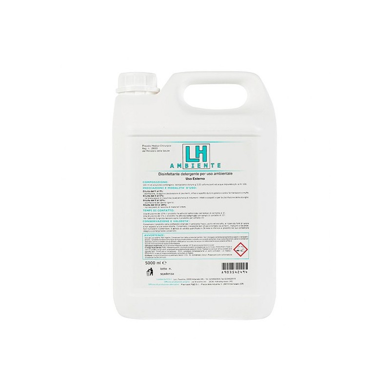 LH AMBIENTE LH Ambiente è una soluzione disinfettante e detergente profumata a base di benzalconio cloruro. Per la disinfezione, detersione e deodorazione di pavimenti, servizi igienici, infissi, superfici dure e stoviglie. Può essere utilizzato anche in macchina lavabiancheria.