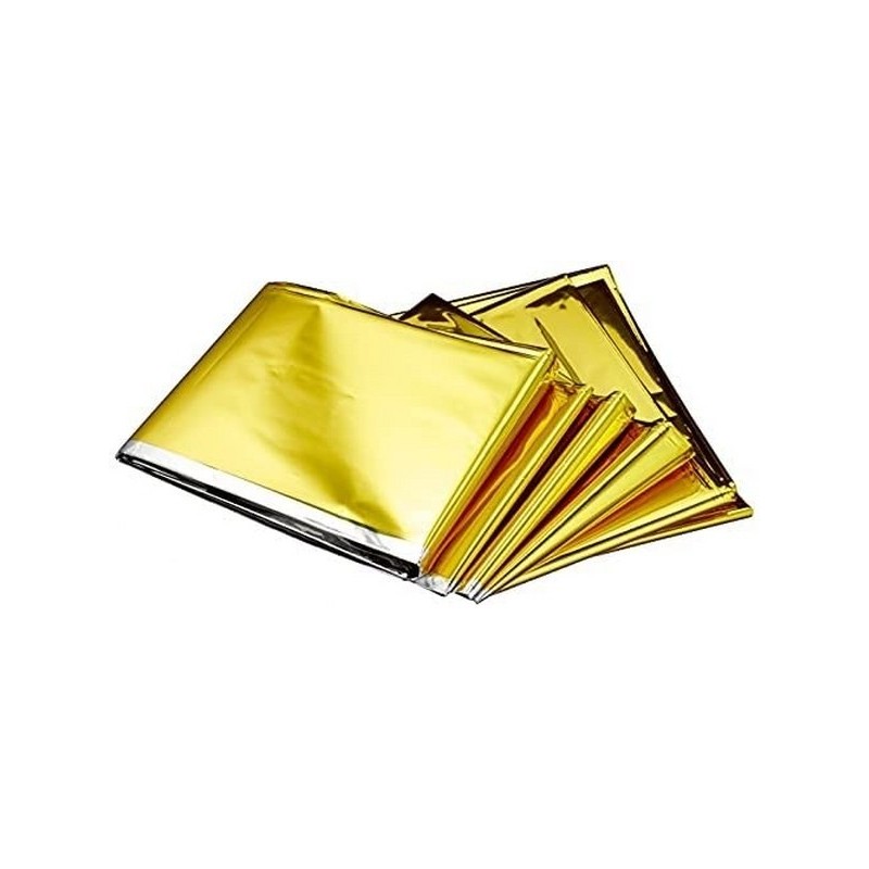 Materiale: foglio in poliestere metallizzato alluminio/alluminio dorato.