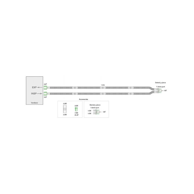 - : Circuito per ventilazione Smoothbore da 22mm, lungh. 1.6m - sterile |