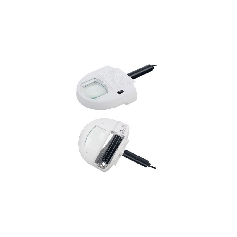 Lampada specifica per dermatologia, oftalmologia e veterinaria, dotata di una lampadina 9W con raggi UV di una lunghezza d'onda di circa 360 Nm, innocui per la pelle e gli occhi.