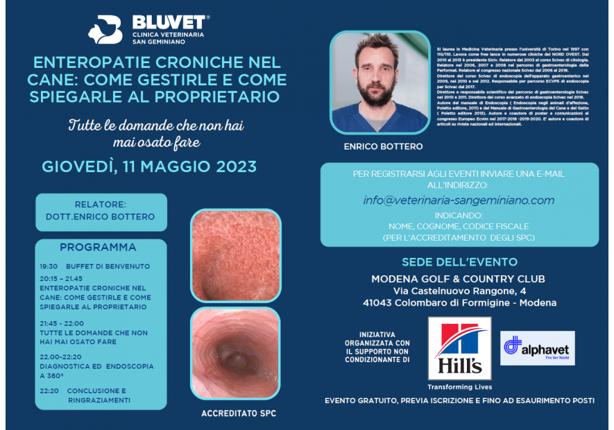 Relatore Dott. Enrico Bottero, organizzazione BluVet.
